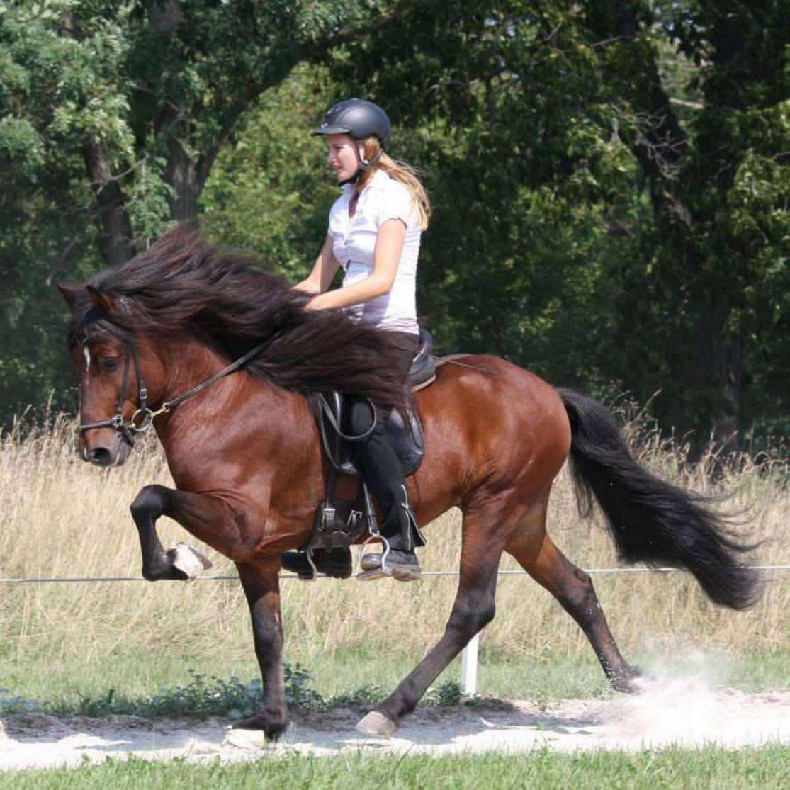 Owned by Will and Ásta Covert, Dynjandi has been awarded Diamond level Lifetime Achievement Medals in Four Gait and Tolt (T1). Dynjandi and his rider Ásta represented the United States beautifully in both national and international level competition, including but certainly not limited to, earning a silver medal in Four Gait Combination and a bronze in Tolt T1 at the 2009 World Championships and topping the World Ranking list in 2012 in T1.