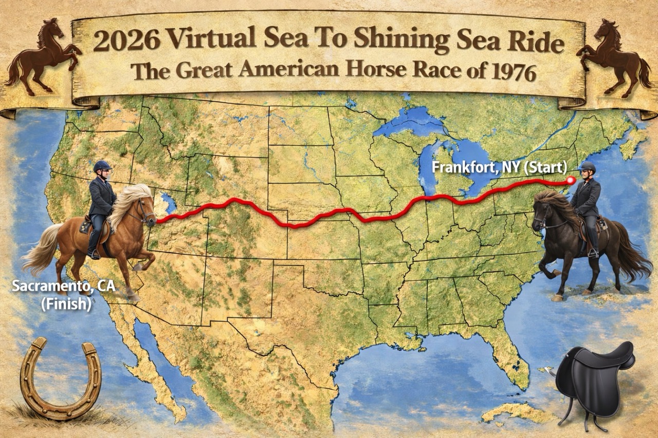 Sea 2 Shining Sea is a yearlong virtual ride on Icelandic Horses. The ride begins on January 19, 2026 ending December 31, 2026. Riders can participate as individuals or teams. All participants must be US Icelandic Horse Congress members throughout the ride to log their hours. Participants log their