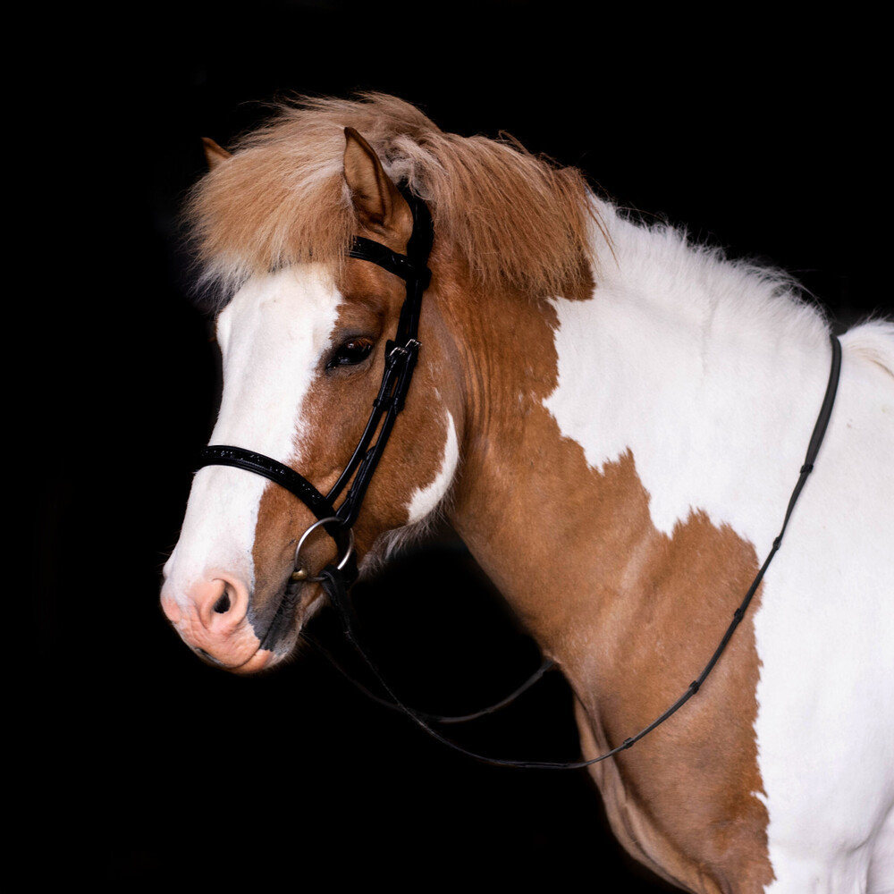 Sporður frá Bergi is a powerful five-gaited first prize stallion with incredible bloodlines and a confident and friendly character. A red dun pinto, he scored high in breeding evaluations for his well-raised neck, good leg quality, and strong hooves. His gaits are clean and high quality, with big movements. He is very balanced and has good suspension in the trot and canter. Sporður’s pace is also powerful and secure. He is willing under saddle but still calm enough to ride bareback out in the field. Sporður was chosen to be the 2021 Icelandic horse model for Breyer Model Horses.